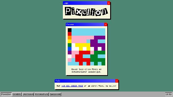 Pixelfon ist Multiplayer Telefon-Spiel, bei dem jeder Pixel eines Bildes mit einem Anruf geändert werden kann. Das Ziel dieses Spieles ist es über...